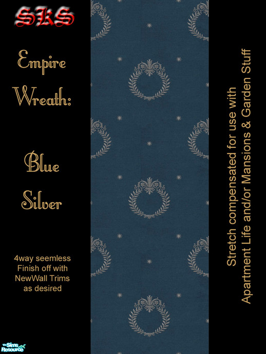 Silver Laurel Wreaths, Classical scroll work and stars bespeckle this wallpaper. 4 way seamless. For use on games running AL and/or MG: Without either, wreaths will be excessivly distorted into flat ovals - They should appear round. By: SKS