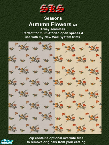 Taken from Seasons, now made 4 way seamless. Perfect for multi-storied walls & use with NewWall trims. Zip includes an optional override file that removes the original wall coverings from your catalog, but not the game. By: SKS