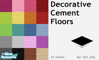 Cement floors to decorate the exterior of your home or business. Comes in 21 vibrant colors. Made to match exactly the Decorative Cement Walls to give the exterior of your building a uniform look (eg. using the floors as roofs). The walls are also by me and can be downloaded from me as well.