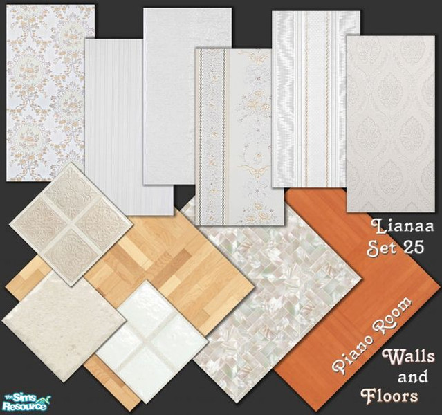Set 25 Piano Room Walls and Floors - elegant wallpapers in shades of white with 6 floors to match