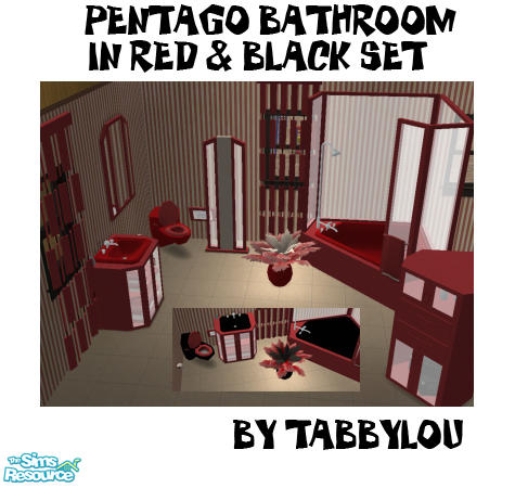 Pentago Bathroom in Red. This was a request by mrscrockett01. It looks great with Cloisonne's mosaic passion floors & walls. I added the porcelain ONLY in black for the tub, toilet and sink basin. I also added a recolor of ONLY the feathers (by SpringwolfDecor) in black and red. Link to Bitzybus' set below & each item has mesh link. Enjoy!