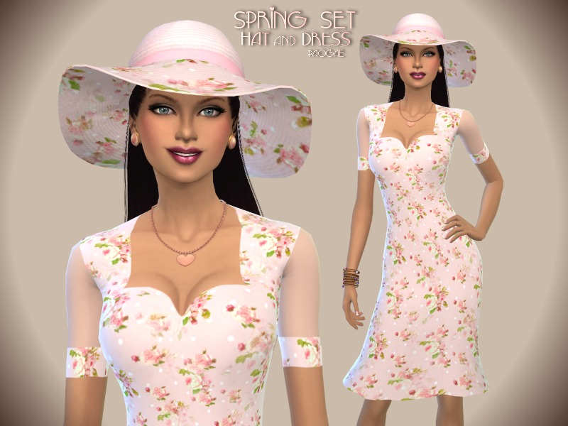 A romantic dress+hat set: delicate pink floral pattern perfect for Springtime