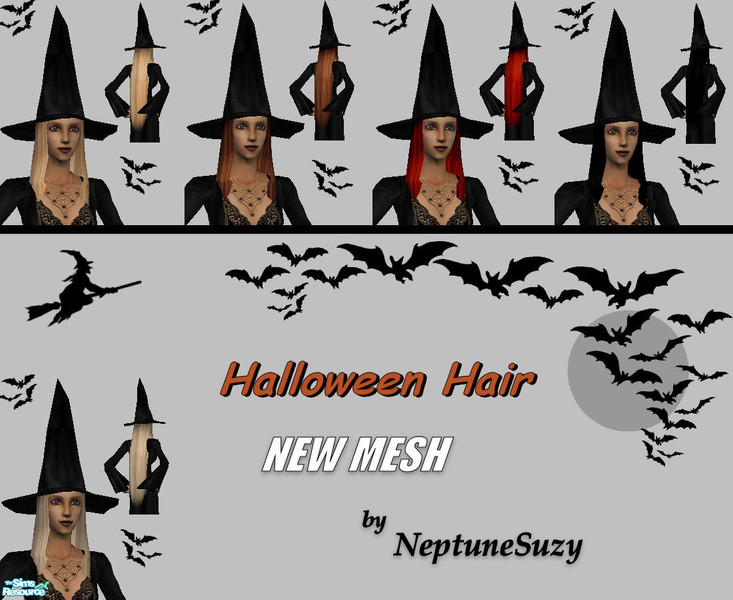 Your sims will love this Set of Witch Hats with their long straight hair! ***New Mesh is included in this set! ***You will need the Mesh and at least one recolor for it to show up in your game. Enjoy!