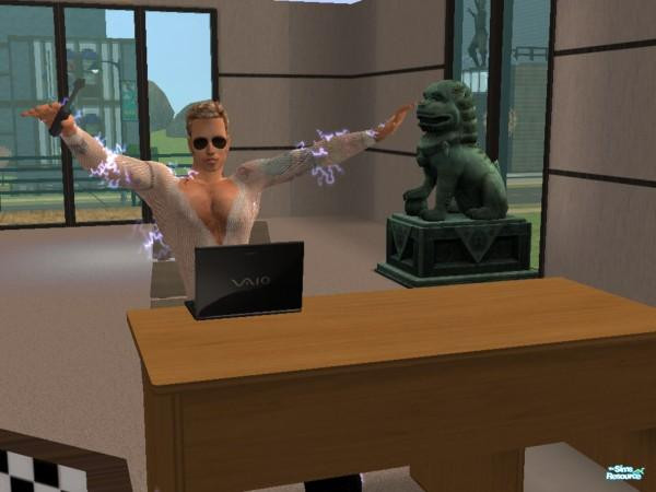 While he was trying to fix the laptop, the machine had a tilt but according to his facial expression, it doesn't hurt at all :P Curious because every time I have a sim being shocked I usually see scary faces on the "victim" but with this sim this definitely didn't happen :)