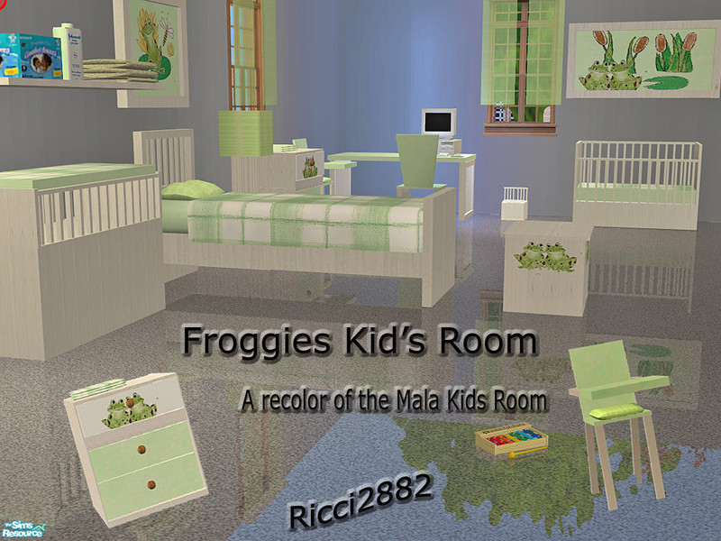 A Recolor of the Mala Bedroom done with little frog accents. Still Cheap, just a new design. Don\'t forget to download the meshes for this set.