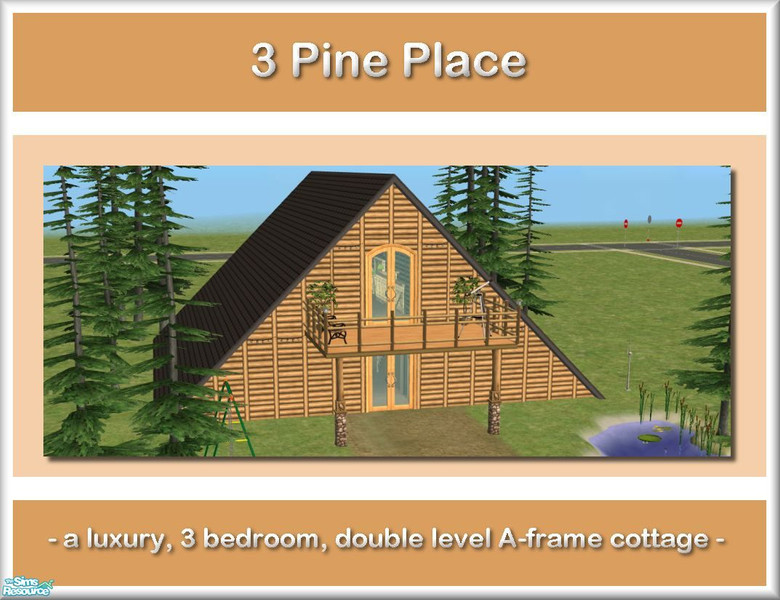 A luxury, 3 bedroom A-frame log cabin for your sims to use as a house or holiday home.