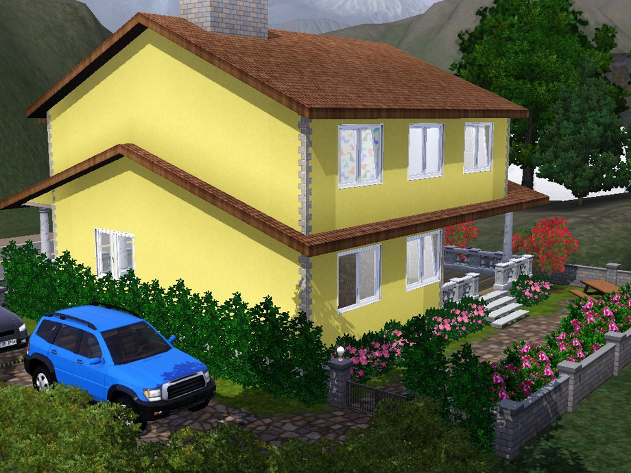 This house has no pool, because there is not enough space. Has 2 car spaces, a little garden and a picnic table.