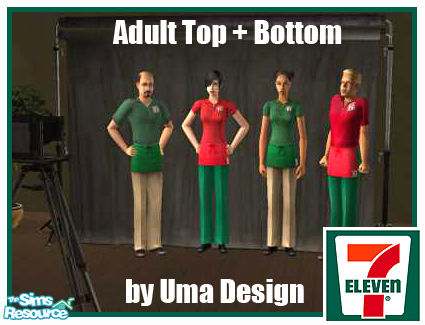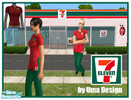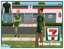 What's a 7-Eleven store without proper work clothes? Logo on front of apron and on t-shirt. Male and female, two colors each. (Look for a real 7-Eleven store on my page!) Enjoy!