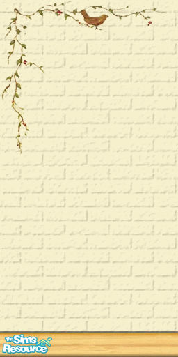 Creme Painted Brick Wall- Tree Stencil Left Corner. Coordinates with my Serene Woods Sunroom.