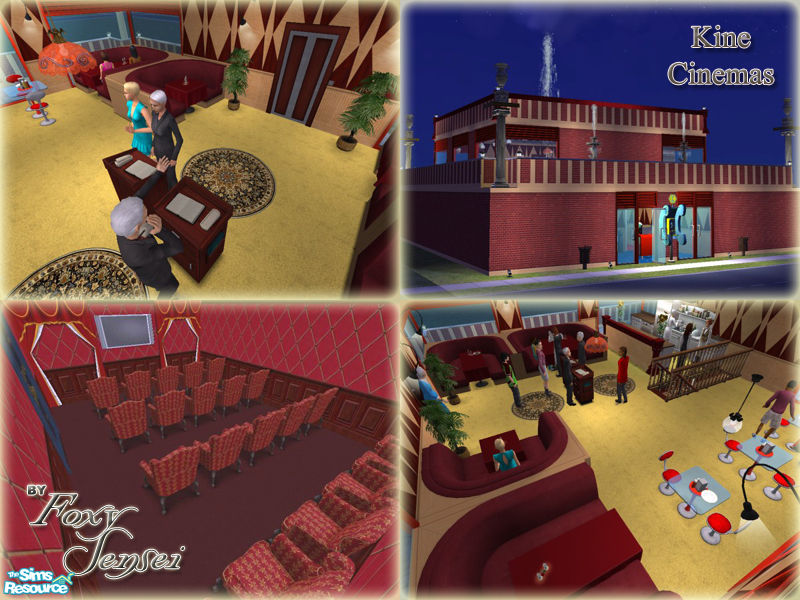 Perfect for a date: kine cinemas has many different cinemas to suit your sims needs, as well as a wonderful dining area upstairs. There are intimite booths, and a canteen option too. Good for Open For Business aspirant enrepreneurs. Open plan kitchen. No hacks used. Original Maxis content only.