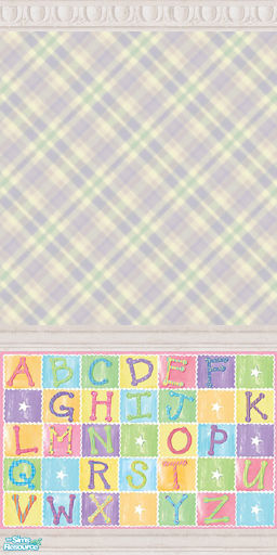Due to the immense popularity of the first set of ABC baby wallpapers, here are some new and completely different ones! They are in Gingham, Plaid and tartan in all colours ranging from green, to blue, to light blue, to yellow, to pink, to purple to peach! There's a very nice relief stucco border and wooden beading, both painted white for an elegant contrast.
