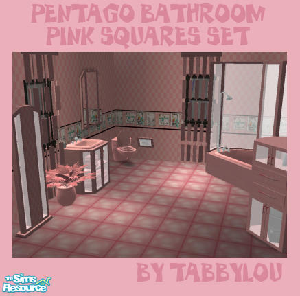 Recolor of Bitzybus' Pentago Bathroom in Pink Squares motif. Enjoy! Make sure you get her meshes or these recolors will not show up in your game.