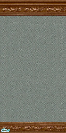 Heavily carved walnut mouldings hold a textured teal wallpaper.