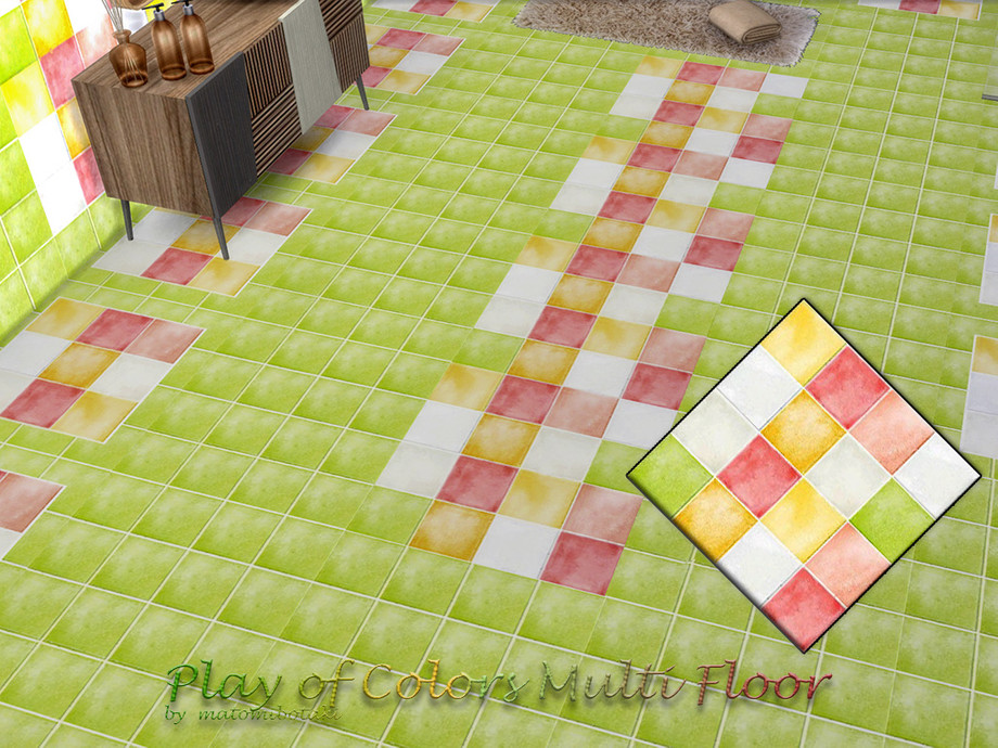 Colorful tile floor that simply puts you in a good mood, not only for the bathroom, in 3 different designs, each item with custom thumbnail, created for Sims 4 by matomibotaki.