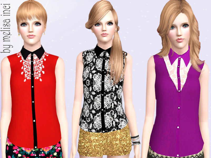 is a thin chiffon blouse with lace or diamante at the front.This item is a Sleeveless Lace Collared Shirt, great for the summer.