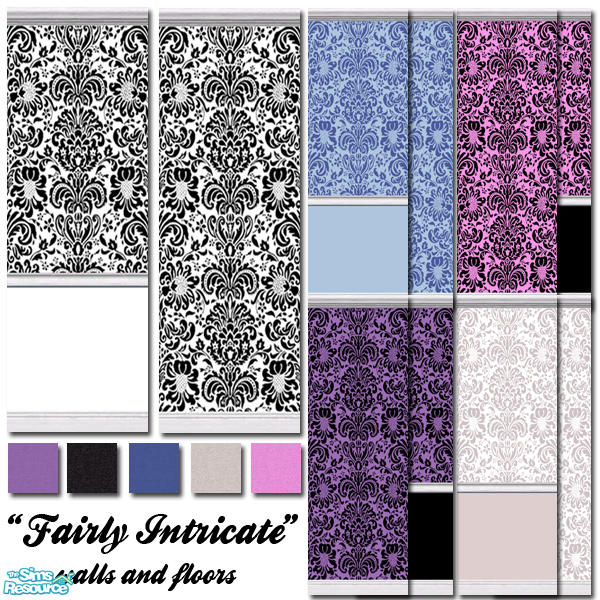 Wallpapers with a fairly intricate pattern in five colours, with matching basic carpets. Guaranteed to make any room interesting!