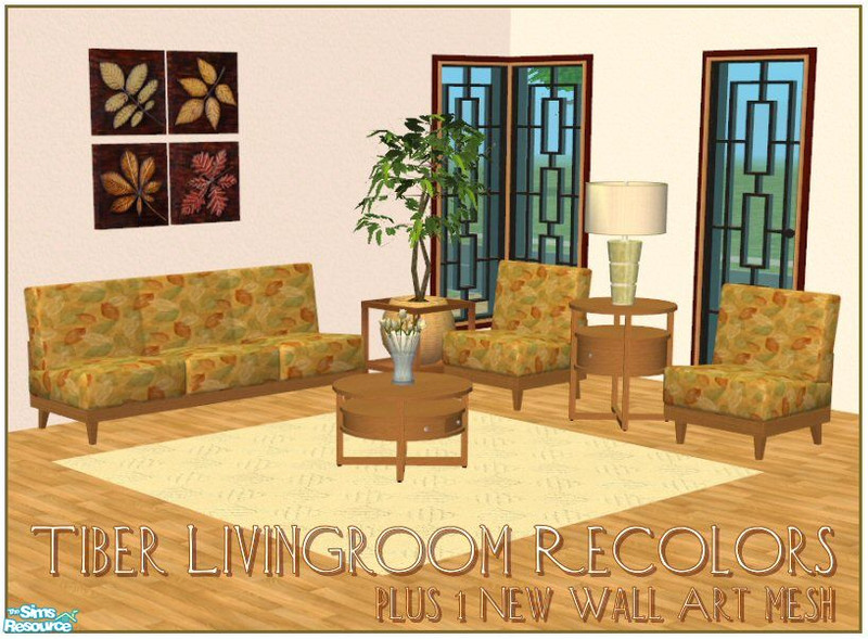 A recolor set of my Tiber Livingroom in a beautiful leaf fabric and honey colored wood. The wood and fabric textures for the sofa and chair are separate so the wood and fabrics can be mixed and matched. Set also includes a new wall art mesh which requires Nightlife expansion. Enjoy and Happy Simming.