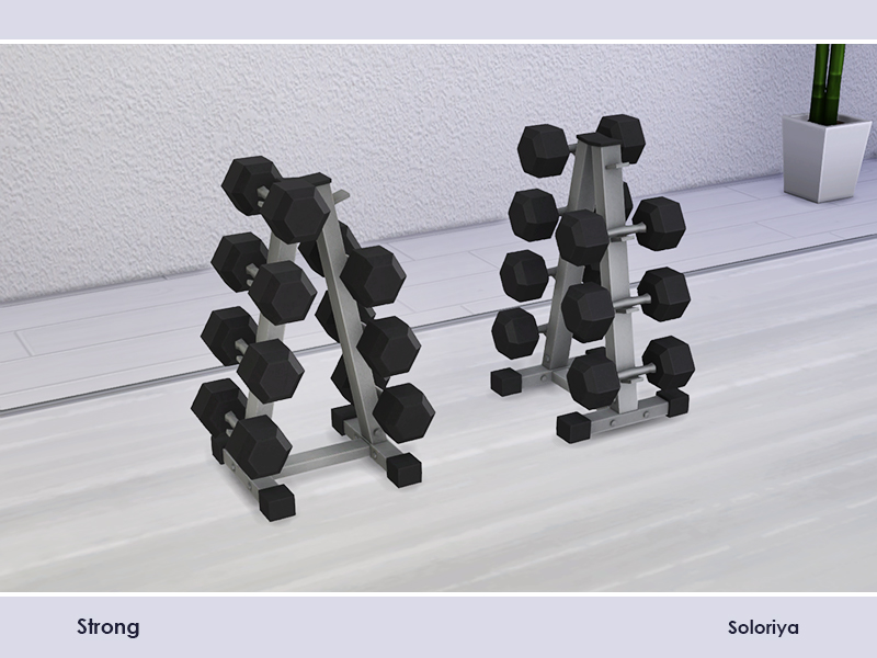 Decorative hex dumbbell rack. Part of Strong set. 1 color variation. Category: Decorative - Miscellaneous.
