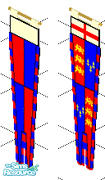 The battle pennant of Henry VI. Because Henry VI was king virtually from birth, he never used a personal device like Edward IV did as Duke of York and Richard III did as Duke of Gloucester. Therefore his banner shows the leopards of England and the fleur de lys of France, showing his claim to France due to his parent's marriage treaty.