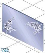 Large 3-tiled mirro,r etched with rose sprays in the corners, to span across 3 counters. Note: Invisible back.