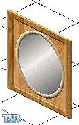 Decorative oak frame encircles a round mirror. Mirror is backless.