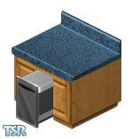 Beautiful blue and oak kitchen cabinet/counter top and trash compactor combination. Part of the Blue Country Oak Kitchen Set.