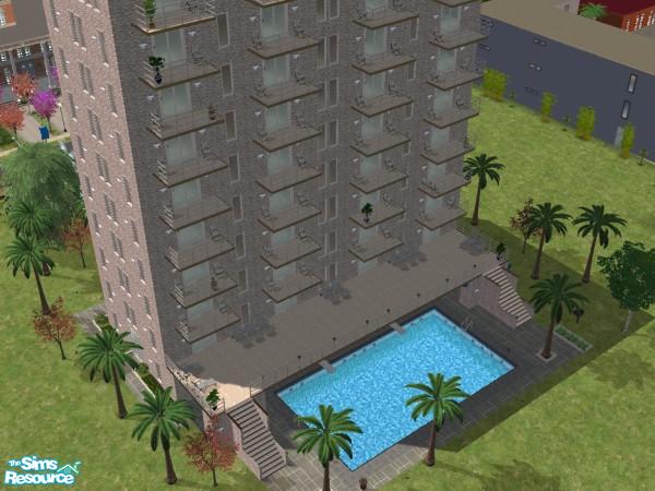 The Grand Hotel ... large tower with private balconies, nice 1/2 covered pool area. Ten floors. 5 x 4 lot size.