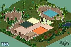 Another California-styled home of Sim Super Stars with 2 bedrooms, 1 full bathrooms, 1 kitchen/dining area, a living room, an upstairs game/party room, covered porches, an enclosed pool, an enclosed grilling area and a massive garden- Enjoy!