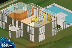 I made to this house something very special and Sims love it .. Well , the 1st floor of this house contains big blue 'n' {pine soul} wood floor kitchen + a bathroom + a hall + a small room , rounded by so many windows , where Sims' plants can grow up normally with sunlight .. On the second floor of this house there is a hall with balconies + a yellow child's bedroom {with its bathroom} + a green adult's bedroom {with it bathroom} too . And the house also contains a big yard filled up with Nasturtiums ..
