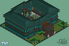 Picture shows the house darker than it looks in the game. Picture really does this no justice. First house I built for the Sims version of my own family. My son (legomaster) dubbed it the "Cook Hotel". Features an upstairs balcony overlooking the pool. Tons of extras included in this 4 bedroom, 6 bathroom dwelling. Among other things it includes a computer networking room & exercise room.