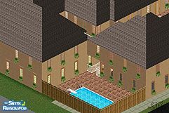 Affordable, spacious living for a group of sims. 8 separate units, each contains rooms for a kitchen, 1 bedroom with bath, living room and spare room. Fenced in pool in the back of the complex. Building also comes with rooms on the 2nd floor available for a weight room, laundry room and spa. All units have there own outside access front door. Shopping list is included for some of the object in the pictures.