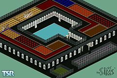 A huge hotel like home that includes 6 bedrooms, 4 bathrooms, 4 hallways, 2 entry rooms, 2 main halls, a Living room, a games room, and a pool.