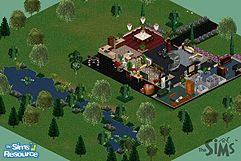 Not too long ago the children of Old Town's founding fathers decided they needed a place of their own. This new place had to be just outrageous enough to be offensive so that their parents were not always stopping by and yet classy enough to retain its resale value. It also had to be larger than any apartment yet small enough to be affordable but most importantly, it needed space dedicated to parties. Thus the Ebonview floorplan was born. The entire second floor is one large party room with an attached bathroom so that guests can stay upstairs and party through the night. The party room comes equipped with a buffet table, two dining tables with seating for six, a pinball machine, a jukebox and dance floor, three sofas, a big-screen television and an aquarium. The first floor has a more classic decorating scheme and consists of two Master suite style bedrooms, a large kitchen, a formal dining room, a formal living room, a fourth bathroom and a den. The patio is furnished with a barbeque and dining for four, a hot tub and a computer desk. The house has a terrific view of the lake in the backyard as well as the river below.