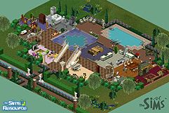 Built in the late 1800s and recently renovated, Elton Hall is still as glamorous today as it was before. The original owner, William Sim-Elton, came to Sim City with only the clothes on his back. He valued hard work and honesty and amassed a great fortune. He Kept the Hall as a retreat for his family after frantic months in the City. Sadly, when he passed away, his children fought bitterly over who should have control of the estate. Sim-Elton would have rolled in his grave to see his family bickering like peasants over a crumb. The Hall, being merely a weekend retreat, isn't very large by the standards of the Rich but your Sim will love it! The house comes almost fully furnished (needs a few decorative touches) and has six bedrooms (five upstairs) and six full bathrooms (two upstairs). The first floor consists of a formal living room, a sitting room, four bathrooms, a large bedroom suite, an indoor swimming pool, both formal and informal dining rooms and a lounge with a fieldstone fireplace. The kitchen has been completely modernized with the most up to date appliances. The second floor has five large bedrooms, two bathrooms, a music room with wet bar and a T.V. room. The yard has been professionally landscaped around the swimming pool and two backyard patios as well as the three small ponds.