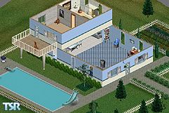 A nice simple house, 2 floors, 1 bath & bed on top floor, kitchen & family room on bottom floor, garden & pool. Fenced yard.