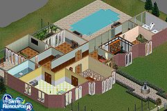 The House for your rich Sims. Three bedrooms, two bathrooms, sauna, family room, games room.