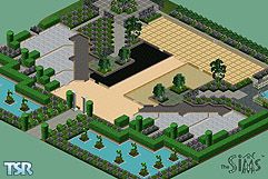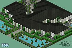 This large and luxerious house is just what the rich sim ordered. It has eight large rooms for varied purposes and one masive ball room in the back. The ball room is completely surrounded by full-length glass windows to give the impression that the party is in the beautiful landscape outside but you still get the warm comfort of the inside. The numerous and large gardens surrounding the entire house compliments the three pools. The large two in the front are for looking purposes only but a more neutralized version is in the back yard with complete privacy. This house is so large your sims will have a blast turning it into a large home.