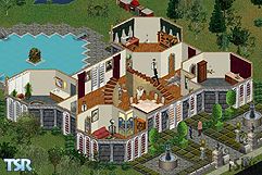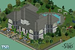 This is a modern airy castle for sims who don't like dreary homes.It has three bedrooms, two baths, a dining area, and a den. Comes with a swimming pool, a bar-b-que area, and lovely forrested grounds.