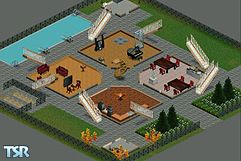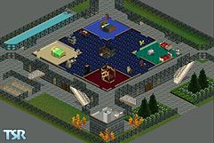 Fabulous offer for second or third time buyers: A genuine castle. This castle was modernized to accomodate the modern sim, 4 baths and two half baths were established in the towers, the moat was cancelled except in the back where it was converted into a swimming pool. The previos owner left lots of goodies in the cupboards (sim-day download) upstairs. They are free of charge, if anybody wants to keep a lot of old rubbish like that. Somebody left a box on the front walkway, contents unknown, it too is free of charge. The castle is expensive but has room for eight sims - 6 adults and two children - and it is within range of most families that size. It is equipped with mostly with basics but several items can be classified as luxuries. Be careful not to let the garden get neglected as it contains a few rare sprigs and quite a lot of flowers, maid and gardener (or even butler) are recommended for a house this size. All furnishings are new or close to new.