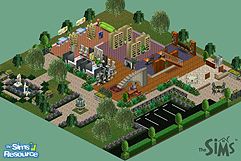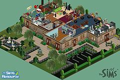 Does your Sim love to read? Then why not become the Old Town Librarian? The Old Town Library, dedicated to the Memory of the Elder Goths who died in a tragic fire, is located just on the edge of town. The second floor consists of a two bedroom apartment, complete with one full bathroom, a kitchen, a dining room and a living room. Also upstairs are two bathrooms (one for women, one for men) and the library's computer learning center with four top of the line systems, a chess set and two artists's easels. Walk down the sweeping stone staircase to the first floor reception/check-out desk next to the current art display (this month it is ancient statues and suits of armor). Also on the first floor are the main reading rooms, one for periodicals and journals, one for best selling fiction and a room for children complete with a toychest. There are two bathrooms (one for women, one for men) and a kitchen/break-room that opens onto a lovely stone patio. The yard has been professionally landscaped around the fountain by the main entrance and the small meditation garden. Plenty of parking for all!