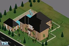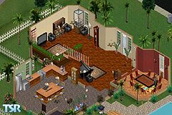 This lot is the perfect tropical get-away for the wealthy party-animal Sim. The first floor of the main house contains a living room, dining room, music nook, half-bath, and a spacious kitchen. Upstairs you will find a master bed/bathroom with a private balcony, a private office, a party loft that opens out onto another large balcony, and well as his and her bathrooms for the party guests. Separate from the main house, this lot also includes a backyard with a pool and a small pool-side building containing work-out equipment and a hottub.