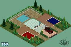 Rialta Duplex has an outdoor swimming pool a porch, a garage, 2 bedrooms, 2 living rooms, 1 shared bath, and 1 shared kitchen/dining area. Perfect for 2 single Sims or 2 couples just starting out! Garage door and car are not included!
