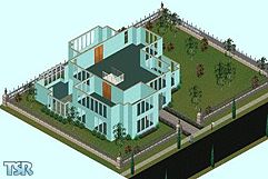 This house is the unfurnished/recolored version of Kensington Court. A few minor changes have been made to the house to make it a castle unto itself. The house includes a living space (downstairs) and an entertainment area (upstairs). The living space includes a living room, a formal dining room, an eat-in kitchen, 2 bedrooms with a shared bath. The entertainment space includes a large opened party room and 2 separate rooms. This house is a steal at under 45,000 simoleons!