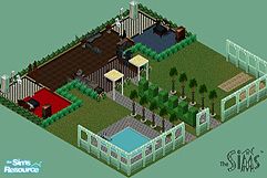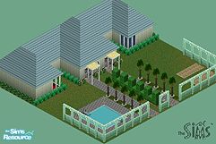 This house is placed quite far from the street and is protected from intruders with large front gardens featuring a swimming pool. The house is suitable for two sims or two couples, with refurnishing it would also suit any other family type. contains two bedrooms with ensuite bathrooms, a large living room and a semiseperated eat-in kitchen.