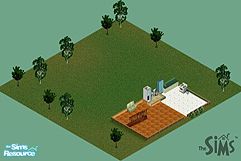 This house is for first time home buyers. It's an open floor plan. 1 bedroom and bathroom with tub upstairs with a patio. Downstairs is the living space open to the eat in kitchen. There's a bathroom with shower here also. I've furnished it a bit. I got as much as I could with the 20,000 that you start with after building the house.
