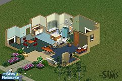 Another quality home for under 20,000 simoleans! Lovely home built after the Hicks moved off their lot features two comfy fireplaces, a full dining area and a full bath with large bedroom. The kitchen features a canning center, and there is a computer for your job search in the study area off the living