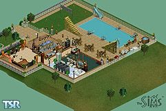 This is a definate party home. Country woods are used for most of the interior/exterior walls and most of the flooring. Patio has poolside seating along with wood dinettes close to the buffet table that's set perfectly awaiting the caterer to wait on you and your guests hand and foot. This is a one bedroom home but can easily be converted. The entire second floor is dedicated to a sim party! Ride the bull, play pool or an arcade game, try your hand at the electric train or watch others! Eating also available on the second floor. Dance the night away on the dance floor or DJ for your friends. This house could easily hold and provide fun for as many sims as you can get to visit! You will run out of time (or energy) before the fun stops here!