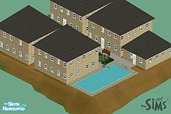Wheather your attending college or just need a small apartment this is the place for you. It has 4 seperate apartments which each have 1 livingroom, 1 eat-in kitchen, 1 bathroom and 1 bedroom. Each apartment comes fully furnished. There's also an on-site laundry area. It also has a nice sized swimming pool. Each apartment also has a security system installed. It's a must have for any single Sim.