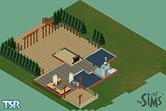 This 2 bedroom home is perfect for the sims who Love the Great Outdoors. It has a Large front deck surronded by big trees and a back porch overlooking the Sims River.