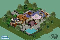 The Kendrick floorplan is one of three clasically styled homes that comes almost fully furnished. All that is missing are the decorative touches such as artwork, light fixtures and plants which your sim can add for a more personal touch. This particular home was named after Phillip Sim-Kendrick who was the original architect and had a flair for houses with unusual shapes and coloring. The second floor consists of two massive bedrooms with attached bathrooms. Each bedroom can sleep up to four Sims although that can be changed to suit your Sim's particular needs. There is also an informal living room, a half-bathroom and two balconies (one with hottub) upstairs. The first floor has a large kitchen, a formal living room, a formal and informal dining room, a den and a study or office as well as two bathrooms. The landscaped yard focuses on the patio and the swimming pool out back.